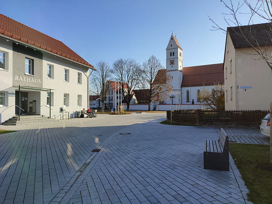 Der Ort Leibi selbst ist ein schönes Dorf, soweit wir es betrachten konnten, das mehr oder weniger nur durch die Bahnstrecke Ulm-München von Nersingen getrennt wird. Aber der direkte Weg war uns versperrt: Eine stark befahrene St 2011 mit Leitplanken war uns unmöglich zu begehen, also machten wir einen Umweg bis zum nächsten Bahnübergang, der sich einen dreiviertel Kilometer östlich fand, direkt am Rand des wenig idyllischen Industriegebietes von Nersingen, das wir in seiner ganzen Länge durchquerten, beim Einkaufszentrum einen Stehimbiss nahmen. Anschließend machten wir uns wieder nach Südwesten auf, diesmal nicht auf einsamen Pfaden im schillernden Auwald, sondern an der vielbefahrenen und lauten B10 mit ihrem Schwerverkehr.