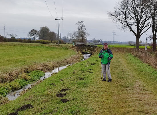 Wieder war es Marieluise, die uns drei, Beate, Otmar und mich, an den Start, also nach Holzheim brachte. Diesmal war es bedeckt, aber trocken, und etwas kälter. „Am Brünnele“ überquerten wir die nun schon deutlich schmalere Leibi, um ihr wieder konsequent am Uferweg zu folgen.
